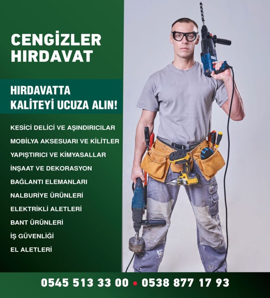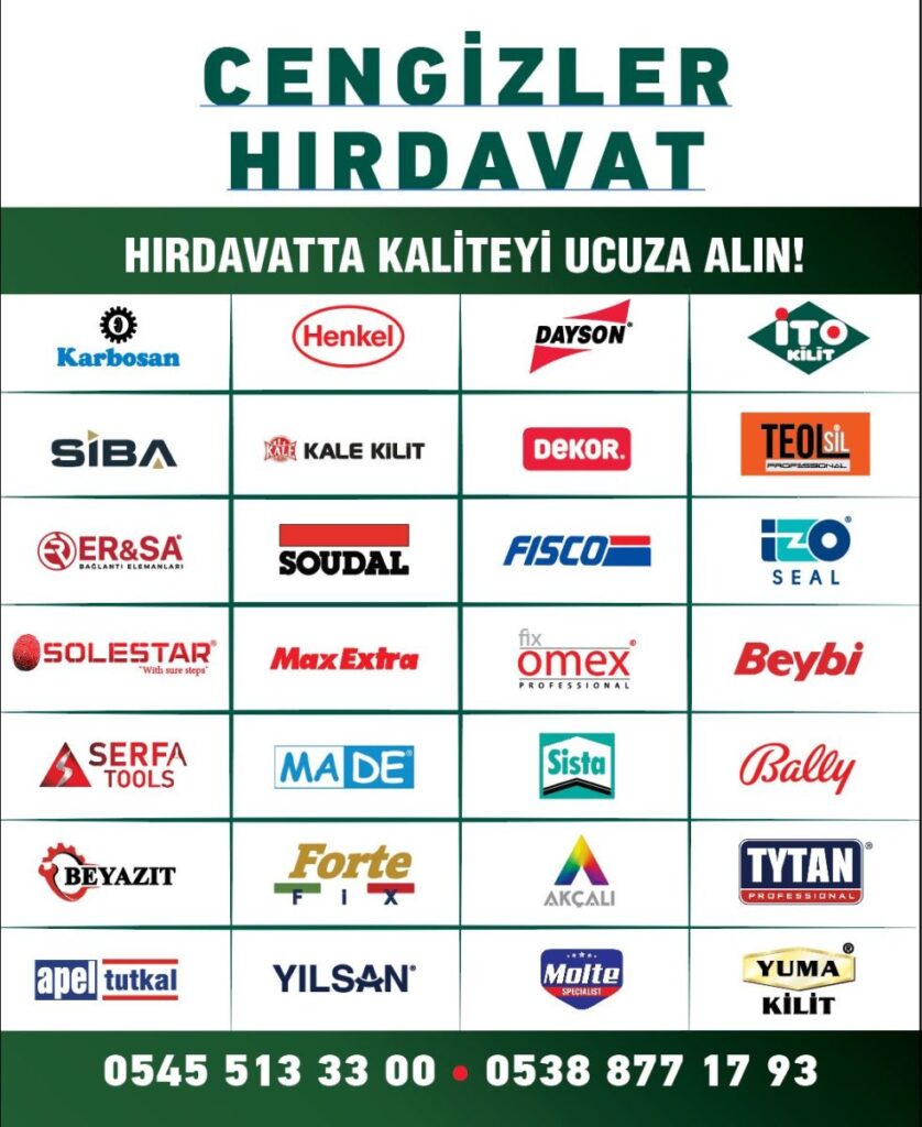 Cengizler Hırdavat, Şanlıurfa’da yapı, sanayi, mobilya ve tamirat sektörlerine yönelik geniş ürün yelpazesiyle profesyonel çözümler sunan güvenilir bir tedarikçidir. El aletlerinden elektrikli makinelere, yapı malzemelerinden bağlantı ekipmanlarına, mobilya aksesuarlarından yapıştırıcılara, bant ürünlerinden nalburiye malzemelerine kadar yüzlerce ürünü tek çatı altında toplar. Her ürün orijinal, garantili ve uzun ömürlüdür. Firma; ustalara, işletmelere ve bireysel kullanıcılara uygun fiyat, hızlı teslimat ve teknik destek avantajı sunarak her projede güvenilir bir iş ortağı olmayı hedefler. Cengizler Hırdavat, “gücü, dayanıklılığı ve kaliteyi” bir araya getirerek Şanlıurfa’da hırdavat sektörünün lider markası olma yolunda emin adımlarla ilerlemektedir.